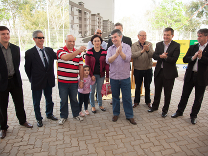 simbolizando a entrega dos apartamentos à todas as 96 famílias
