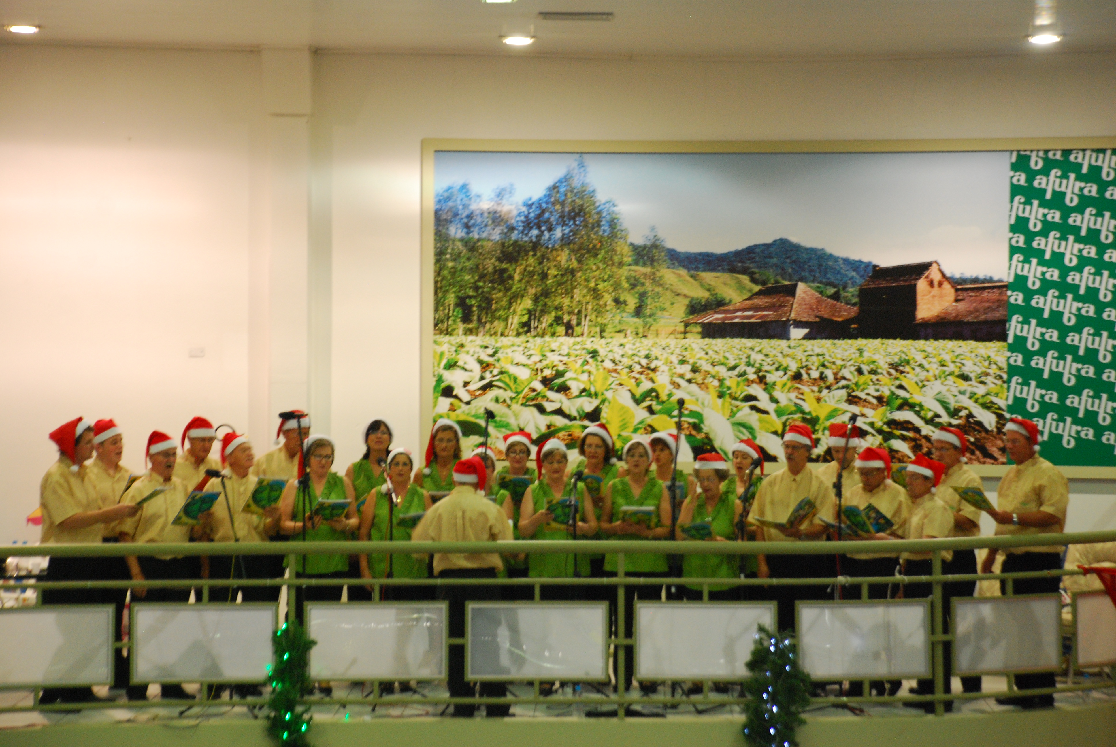 Há nove anos, uma tradição encanta quem passa pela loja da Afubra: o coral da entidade. A loja situada na rua Carlos Trein Filho, trouxe para os clientes e funcionários a magia do canto coral, na última terça-feira, 23.