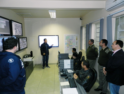 Na tarde da terça-feira, 13 de agosto, o Comando Regional de Polícia Ostensiva do Vale do Rio Pardo (CRPO/VRP) juntamente com o Comando do 23º Batalhão de Polícia Militar (BPM), com sede em Santa Cruz do Sul, receberam a visita do Coronel Jaime Garcia Machado, Comandante do CRPO/Central, onde esteve na Sala de Gestão Operacional e Videomonitoramento do 23º BPM. A Sala trata-se de um projeto que utiliza equipamentos de padrão internacional, tais como GPS, microcâmeras e geolocalizador de ocorrências e um software desenvolvido especialmente para atender as necessidades da instituição.