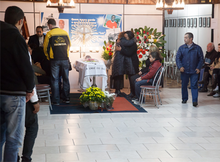 Emocionados, familiares e amigos acompanharam o velório de Cuca nas dependências do FC Santa Cruz