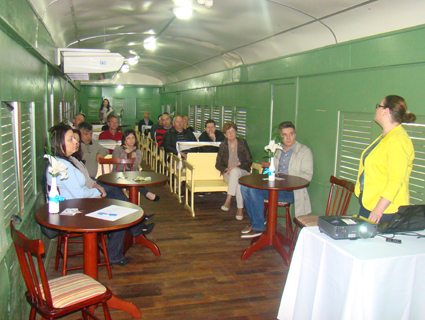 Nesta primeira “viagem” o “trem partiu da estação” levando empresários, representantes do Conselho Municipal de Cultura, produtores e representantes da universidade. Foram convidadas a explanar a coordenadora do curso de Turismo da Unisc, professora Luciana Tremeia, e as produtoras culturais Paula Saccol, Angélica Fonseca e Giovana Goretti.