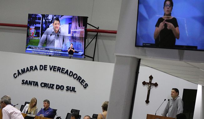 A primeira sessão da Câmara de Vereadores de Santa Cruz do Sul na última segunda-feira, dia 4, contou com uma novidade na estrutura do plenário. Foi instalada uma tela no qual o público pode acompanhar a tradução simultânea na linguagem de libras do que ocorre durante as reuniões.