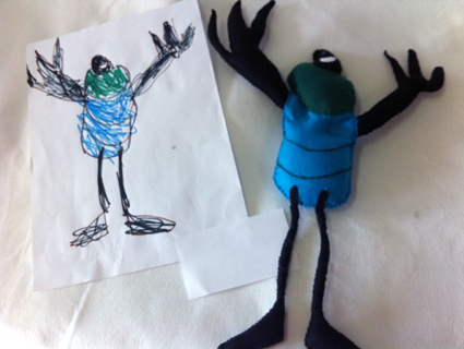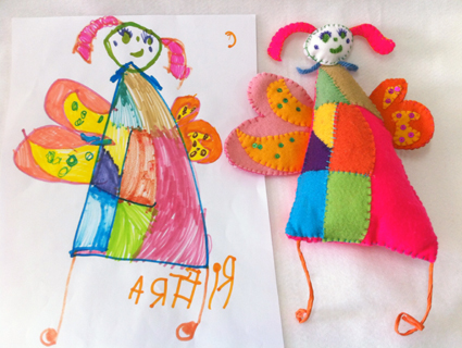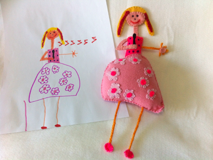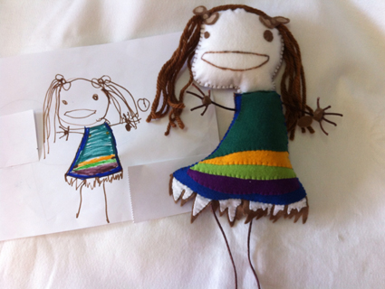 Certo dia, durante as férias de inverno, a filha de Luciane Bellini, de seis anos, fez um desenho e ela, na vontade de guardar, decidiu transformá-lo em brinquedo. “A ideia inicial era envolvê-la na atividade”, explica Luciane, comentando sobre a reação da filha em ver a boneca pronta.