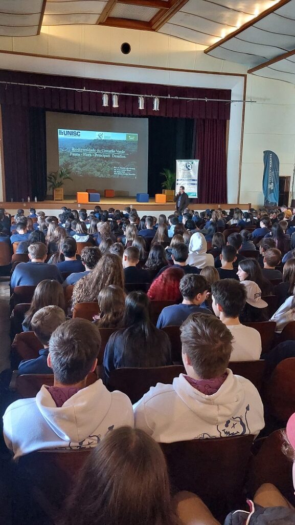 Já o grupo de pesquisa do Mestrado e Doutorado em Tecnologia Ambiental da Unisc, apresentou no auditório do Colégio, aos estudantes dos Anos Finais e Ensino Médio, a riqueza da fauna e flora do município. Os pesquisadores palestraram e proporcionaram um momento para que, os mais de 400 jovens ali presentes, refletissem sobre a Biodiversidade presente no Cinturão Verde de Santa Cruz do Sul.