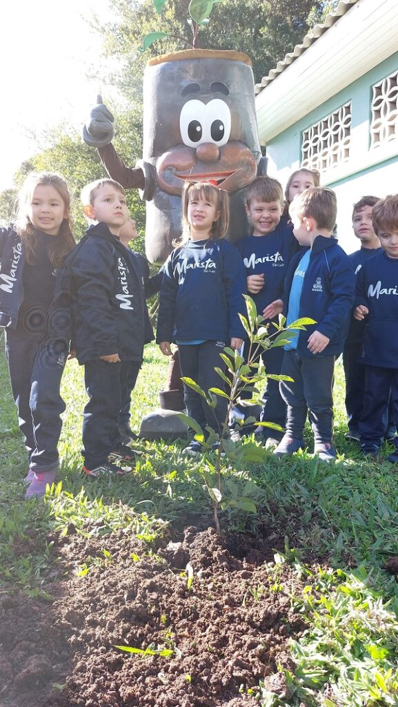 Durante a semana, estudantes de todos os níveis foram envolvidos em atividades. Uma parceria com a Afubra resultou no plantio de duas mudas de árvore. Acompanhado pelo Afubrinha, o professor José Leon Macedo Fernandes, coordenador pedagógico do Projeto Verde é Vida, conversou com as crianças da Educação Infantil sobre a importância de cuidar do meio ambiente. Juntos, no Parque Marista São Luís, plantaram uma cerejeira e um ipê amarelo, esta última, considerada árvore símbolo do Brasil.