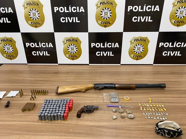 A Delegacia de Repressão às Ações Criminosas Organizadas (Draco) de Santa Cruz do Sul apreendeu nesta manhã, dia 13, armas, drogas e munições no Bairro Avenida.