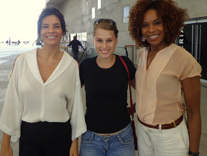 Duda ao centro de Helena Ranaldi (e) e Lica Oliveira (d)