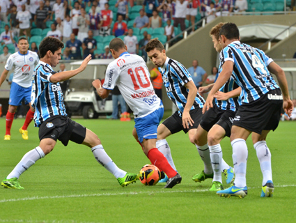 Entre Grêmio, Inter, Cruzeiro e Botafogo, quem se deu bem no fim de semana foi mesmo o Tricolor gaúcho. Depois de um primeiro tempo ruim diante do Bahia em Salvador, o Grêmio cresceu na etapa final e goleou os baianos por 3 a 0. Os gols foram marcados por Riveros, Maxi Rodríguez e Guilherme Biteco.