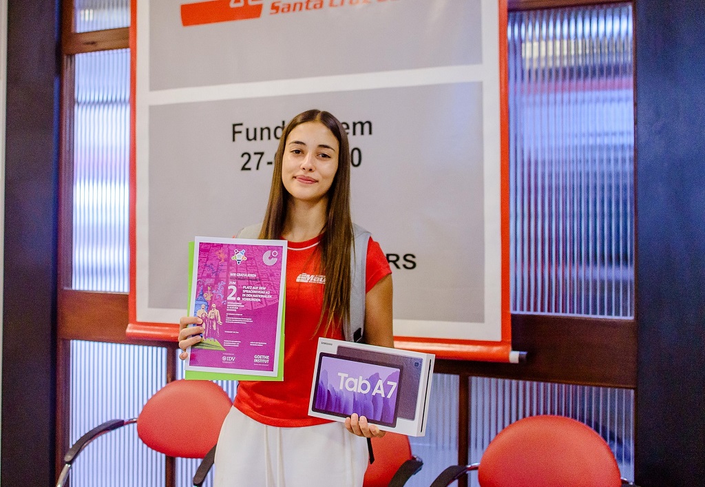 Na segunda fase, em fevereiro deste ano, foram selecionados os seis melhores estudantes de cada nível. A cerimônia de premiação ocorreu de forma on-line, pela plataforma do Goethe Institut. Nesta semana, Alice recebeu o certificado e o prêmio: um tablet Samsung A7.