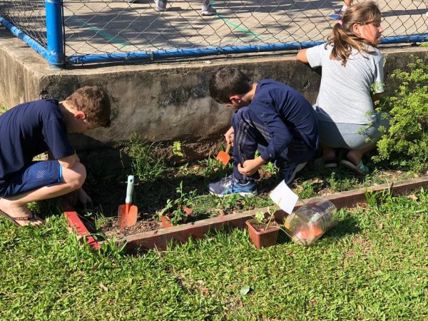 Além das crianças das turmas 11 e 12, o plantio também foi realizado pelo terceiro ano do Turno Educar-se, sob a supervisão da monitora Letícia Sehn. “Após o plantio, todos cuidaram das plantas, regando e adubando”, lembra.
