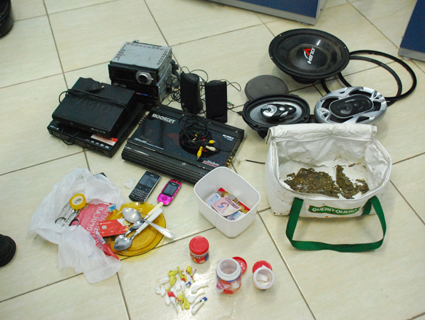 O suspeito tentou se desfazer das drogas, atirando-as ao fundo do pátio, quando os agentes chegaram ao local. No entanto, o material foi encontrado. No total, foram apreendidos de 20 porções de cocaína embaladas para venda e porções da mesma droga que estavam guardadas em potes plásticos, totalizando 138 gramas de cocaína, além de 187 gramas de maconha, valores em dinheiro, telefones celulares e aparelhos eletrônicos diversos, como sons automotivos, alto-falantes automotivos, caixas de som para computador e aparelhos de DVD.
