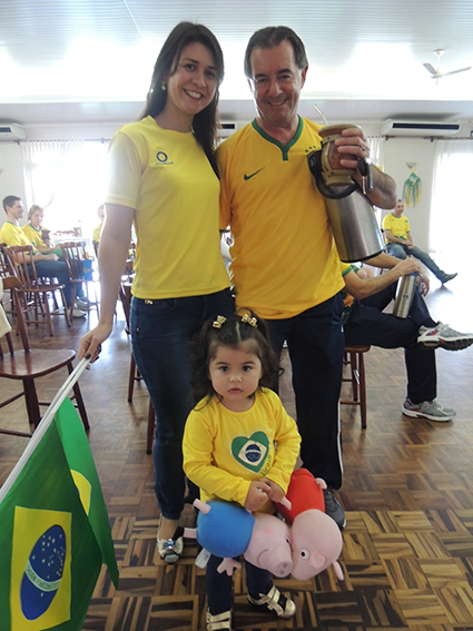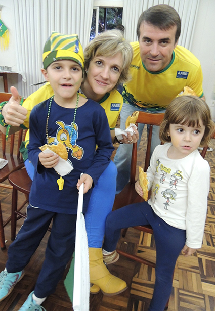A família Baldissera Fábio, Giovana,Cecília e Caetano se reuniu com a torcida da AABB para torcer pelo Brasil.