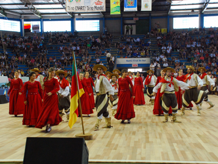 Na tarde de hoje, 17 de novembro, o Centro de Tradições Gaúchas (CTG) Rincão da Alegria realizou sua apresentação. O representante de Santa Cruz do Sul levou para o tablado do Ginásio Poliesportivo o passado com visão no futuro. O grupo, da 5ª Região Tradicionalista, participou da modalidade de danças Força A.