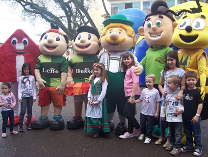 De mãos dadas com os mascotes as crianças tiraram fotos e se divertiram. A caminhada prosseguiu até o espaço próximo à Arena de Shows, no Campo Municipal. No local os pequenos se integraram com os bonecos e com os recepcionistas da Germani Alimentos que fantasiados de personagens infantis alegraram todos nos brinquedos infláveis e distribuíram bolachas, pipoca e algodão doce, além de pintura de rosto e tatuagens.