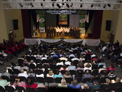 O encontro culminou com a apresentação do Hino de Santa Cruz do Sul. A entoação coletiva simboliza uma homenagem ao aniversário do município, que completa 135 anos de emancipação política-administrativa no dia 28 do presente mês. (Mário André Poll – Departamento Comunicação Afubra)