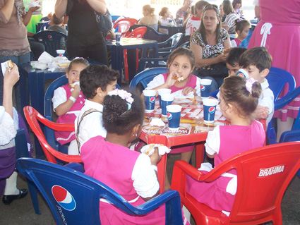 Depois da bela apresentação no Espaço Cultural as crianças da Escola Municipal de Educação Infantil Criança Feliz, do Bairro Jesus, se deliciaram com os lanches na praça de alimentação.