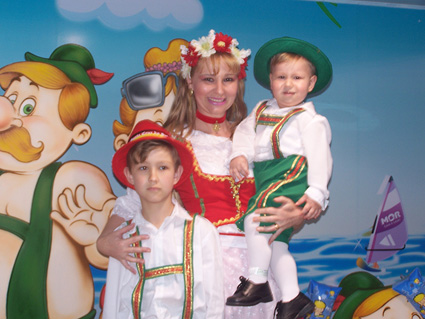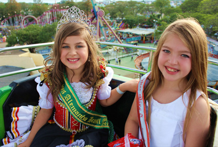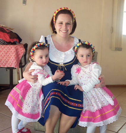 Com seus trajes típicos, as gêmeas Lívia e Clara com a mamãe Graziane divertiram-se na Oktoberfest. Beijos do papai Adriano.