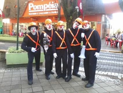 Atores palhaços vieram de Santa Catarina para animar a tarde dos que passaram pelo evento