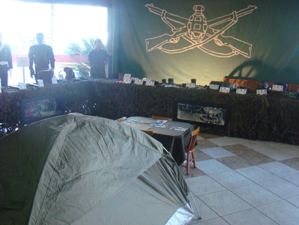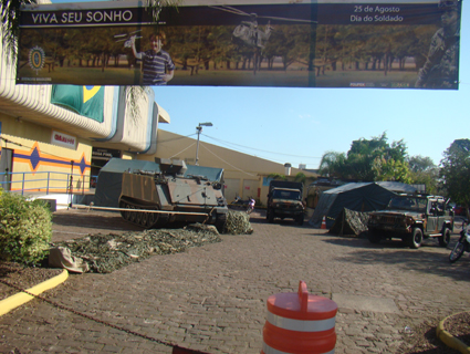 Montada na manhã desta terça-feira, a exposição organizada pelo 7º BIB foi feita para dar maior ênfase ao Dia do Soldado. Na mostra localizada no estacionamento dos fundos do Shopping Santa Cruz, encontra-se um carro blindado, jipes do Exército, motos e mais algumas barracas com materiais bélicos.