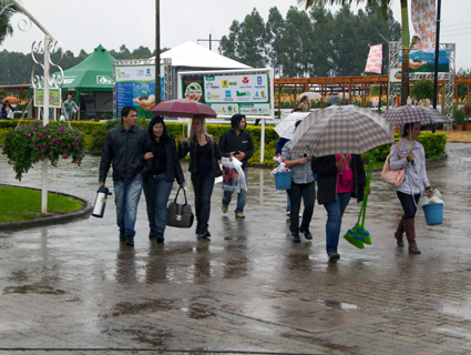 O guarda-chuva foi um acessório indispensável para quem passeava pelo Parque de Exposições em Rincão Del Rey