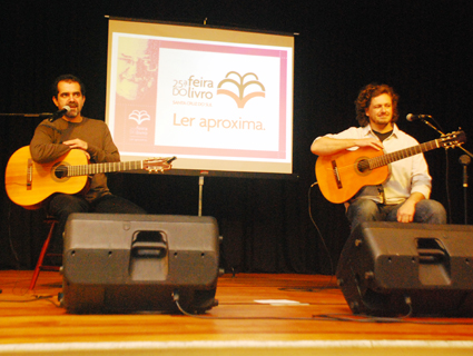 A música é um destaque da Feira, a começar pelo lançamento. O duo Batuque de Cordas, composto por Vinicius Corrêa e Cláudio Veiga foi a atração da noite. E ela vai estar presente em vários momentos da programação, integrando os livros e a leitura com os acordes musicais.