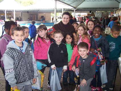Profe Andressa com seus alunos marcaram presença na feira