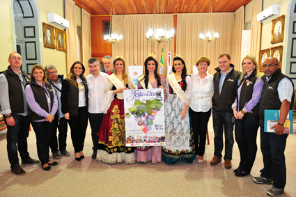 A viagem de divulgação da Festa Nacional da Uva 2014 seguiu pelas principais feiras e eventos do Rio Grande do Sul na última semana. A comitiva, composta pelo casal Presidente da Comissão Comunitária, Edson e Cristina Nespolo, a Rainha Giovana Crosa e as Princesas Gabrielle Debastiani e Karina Furlin, o Presidente da Câmara de Vereadores e vice-presidente do Legislativo da Festa da Uva, Edson da Rosa, o Diretor de Eventos, Júlio Hoffmann, a Diretora de Hospitalidade, Drica de Lucena e o casal da Comissão Social Paulo Benedetti e Eloá Nespolo, visitou cinco cidades do estado.