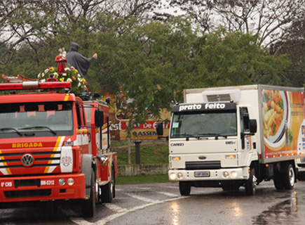 Com chuva ou sol, fiéis e motoristas sempre acompanham a procissão para receberem as bênçãos
