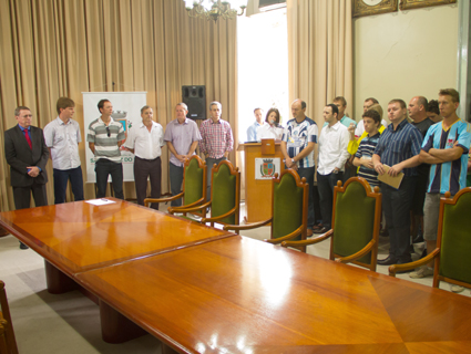 Dirigentes dos clubes amadores do município se fizeram presentes durante o anúncio da liberação dos recursos