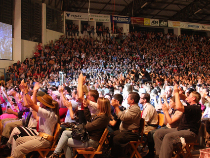 Um ginásio lotado com cerca de 8 mil pessoas presentes. Assim foi a noite do dia 5 de maio, quando aconteceram as gravações do programa alusivo aos 30 anos do Galpão Crioulo, no Ginásio Poliesportivo do Parque do Chimarrão, em Venâncio Aires, durante a 12ª Festa Nacional do Chimarrão (Fenachim).
