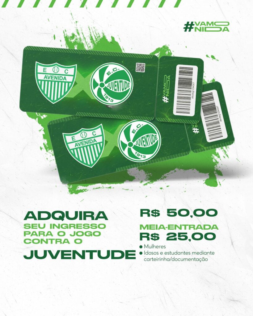 INGRESSOS PARA O JOGO CONTRA O JUVENTUDE JÁ ESTÃO À VENDA