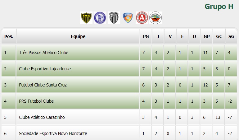 Confira a classificação do Grupo H (Fonte: FGF)