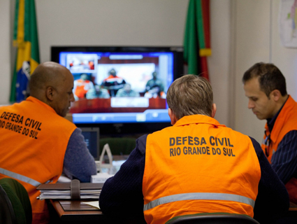 Centro de Gerenciamento de Risco, no Palácio Piratini, acompanha o trabalho das equipes da Defesa Civil