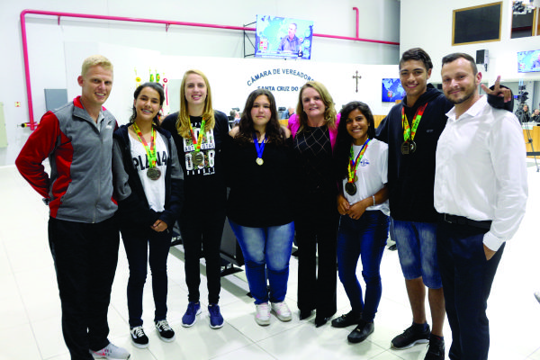 A vereadora ainda destacou dois atletas da EMEF Guilherme Hildebrand, Angelo Rafael Schmidt da Silva e Katiele da Silva Class, que também treinam no projeto.