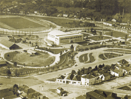 Prédio da Fenaf (hoje Parque da Oktoberfest) abrigou temporariamente as faculdades