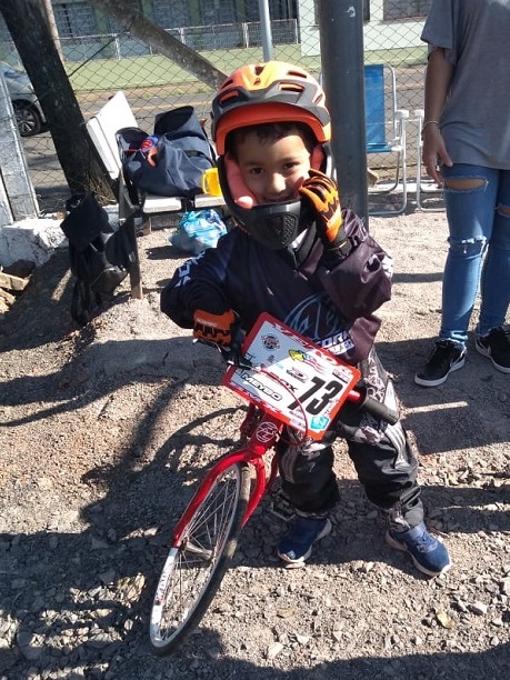 Um orgulho para a família que já coleciona momentos marcantes. “O momento que mais nos marcou foi a primeira competição em pista de nível pró com grau de dificuldade alta realizada em Campo Bom. A descida da largada é maior do que a que temos aqui na cidade e o Jorge foi super destemido”, disseram os pais. “O esporte completo mexe com o corpo e a mente e pra ele é maravilhoso, pois tem evoluído a cada treino na escolinha. Além do pai que o incentiva muito ele conta com o treinamento dos professores da escolinha de BMX, Rafael Leites, Diego Lopes e Douglas Faccin. Lembrando que deixamos ele bem livre para brincar e treinar no seu tempo, assim para ele é uma diversão e ele pratica com o maior prazer”, completou Bruna.