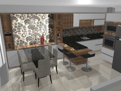 Ambiente integrado entre sala de jantar e cozinha