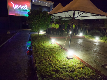 – A fachada e o logotipo possuem iluminação em LED RGB, com a programação