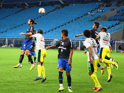 Visando a partida dentro da Libertadores da América, o Grêmio realizou um jogo treino diante do Cerâmica na noite do último sábado, 2. Vanderlei Luxemburgo colocou em campo a mesma equipe que venceu o Flu no Rio de Janeiro: Dida, Pará, Werley, Cris e André Santos; Fernando, Souza, Elano e Zé Roberto; Vargas e Barcos. Por outro lado, o Cerâmica em nenhum momento levou a partida como treinamento e jogou como se estivesse numa verdadeira decisão. Tanto que os visitantes abriram o marcador logo aos 10 minutos de bola rolando.