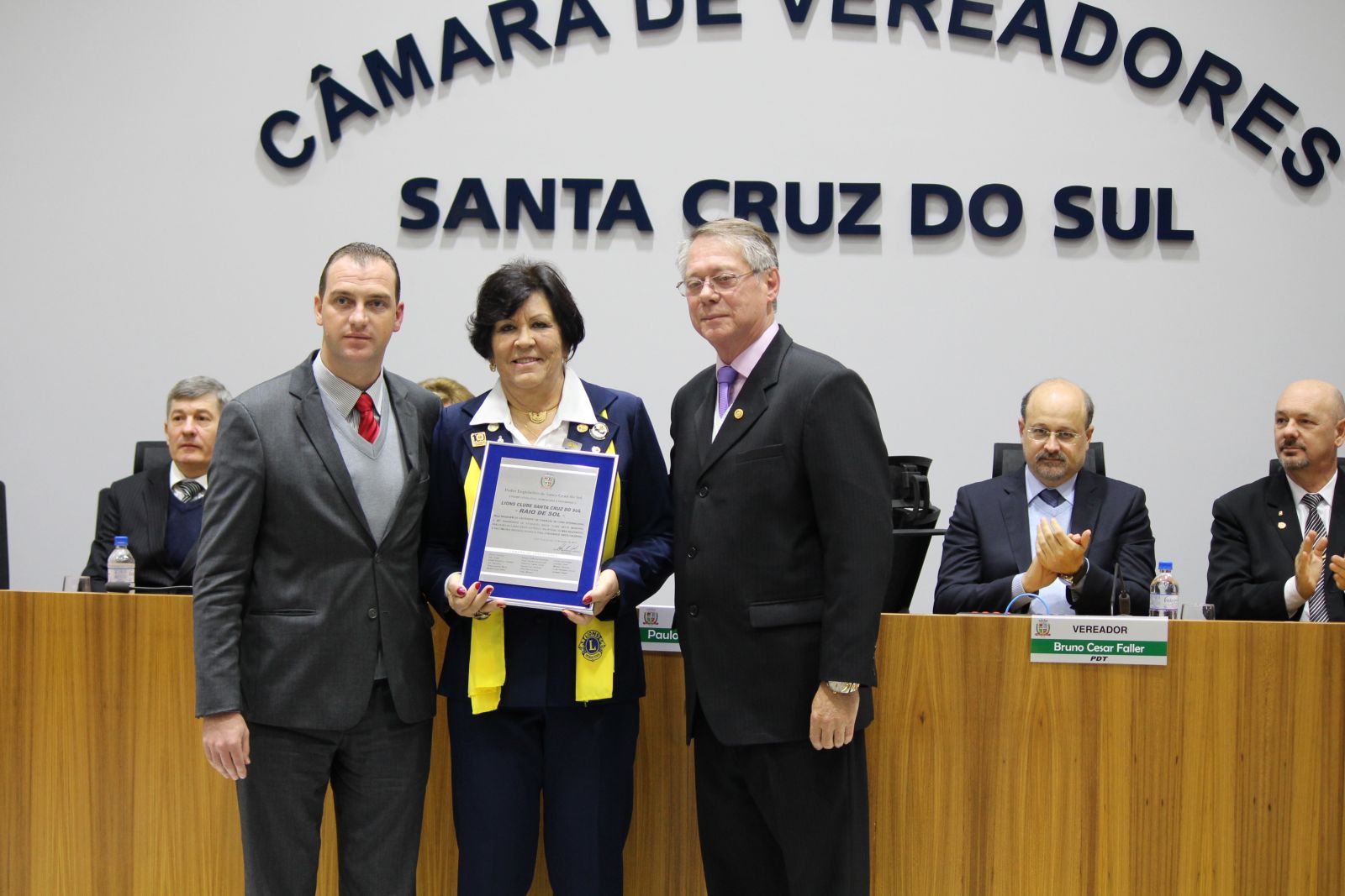 Os 100 anos do Lions Clube foram celebrados em sessão solene na Câmara de Vereadores de Santa Cruz do Sul. A iniciativa foi do vereador Edmar Hermany (PP), que prestou homenagens, ainda pela comemoração de 60 anos da presença do Lions Clube em Santa Cruz do Sul, através dos seus três clubes – Lions Raio de Sol, com 20 anos; Lions Aliança, com 25 anos e Lions Santa Cruz Centro, com 60 anos.