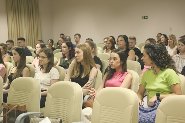 A diretora de ensino e pesquisa do HSC, Giana Diesel Sebastiany, desejou sucesso aos 60 novos residentes da Instituição. “Vocês estão iniciando suas atividades em um hospital de ensino, que possui características próprias desde a sua certificação. É um ecossistema de formação em pesquisa e ensino”, afirmou a professora. “Que aqui vocês possam desenvolver a própria autonomia para exercer suas profissões e para a tomada de decisões”, disse.