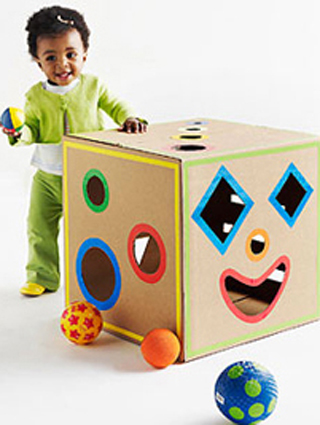 Junte pequenos pedaços de papelões e monte uma caixa com formatos sortidos para ajudar seus filhos a aprender formas e tamanhos.