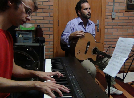 Músicos que já tocam comigo há bastante tempo e conhecem a intimidade deste trabalho. Matheus Kleber (acordeon e teclado), Felipe Álvares (contrabaixo) e Marcello C. Filho (percussão). Todas as músicas do disco a gente já tocava antes de gravar no cd, então o clima da gravação tá muito legal, puxando bastante pra sonoridade ao vivo.
