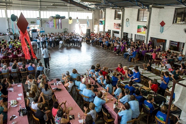 Ao entrar no pavilhão da Comunidade Divino Espírito Santo na tarde desta quarta-feira, 6, a aposentada Cenira Toebe Quoos, de 57 anos, não pensou duas vezes: sacou o aparelho de celular do bolso, chamou as amigas e fez uma selfie. “Estou muito feliz porque este é o encontro da amizade, de celebrar mais um ano de muita diversão e convivência”, disse.