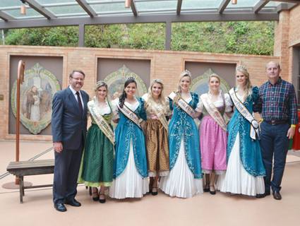 Soberanas e presidente durante visita em Petrópolis juntamente com corte da Oktoberfest de Blumenau