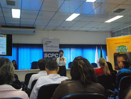 Na manhã de ontem, em parceira com o Sindilojas, o Serviço Social do Comércio (Sesc) apresentou o programa Mesa Brasil Sesc resumindo seu trabalho para empresas e escolas convidadas, com o intuito de alcançar novas metas com o apoio dos presentes para continuar auxiliando 104 instituições sociais cadastradas.