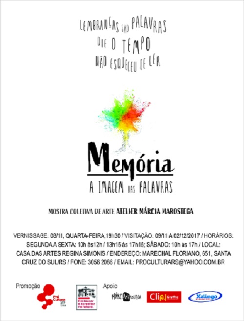 Inicia na noite dessa quarta-feira, 8 de novembro, na Casa de Artes Regina Simonis em Santa Cruz do Sul, a mostra de arte coletiva do ateliê da artista Márcia Marostega, sob o título de “Memória, a Imagem das Palavras”.