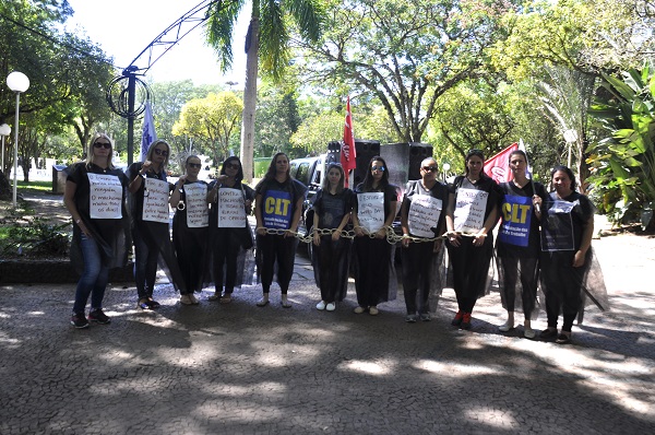 Vestindo roupas pretas e portando cartazes, caracterizando as bandeiras de luta do Movimento, as mulheres destacaram a necessidade de barrar a Reforma da Previdência, de revogar a Reforma Trabalhista e as terceirizações, de por fim ao livre horário do comércio e de acabar com o machismo e todas as formas de opressão contra as mulheres. O grupo simbolizou o luto dos trabalhadores em relação à perda de direitos e a escravidão, em função dos retrocessos que serão ocasionados pela Reforma Trabalhista. Para tanto, algumas mulheres ficaram presas a uma corda e outras portaram algemas, remetendo para o fato de que os trabalhadores são reféns de governos que não os representa, pois não existe uma política de compromisso com o povo. O MML também enfatizou a importância de homens e mulheres exigirem o Fora Temer e todos os corruptos. A concentração na Praça se estendeu até por volta do meio-dia.