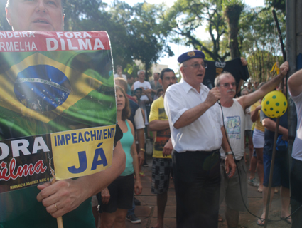 Jônatas Arend Treptow, programador, também se manifestou, pois apesar de ter apoiado a presidente nas últimas eleições, acabou se decepcionando com os poucos meses de mandato que Dilma Rousseff tem cumprido até o momento. “Estamos todos com um sentimento de descontentamento com o governo, corrupção e a má administração. Eu particularmente me sinto um palhaço por ter sido enganado por promessas de campanha, onde apostei meu voto na presidente Dilma. Mas hoje vou pra rua pedindo seu afastamento devido às mentiras de ‘não aumentar a conta de luz, que o Brasil estava livre da crise e que a inflação estava controlada’. É lindo ver o povo saindo às ruas e lutando para minimizar o poder de um Estado corrupto”, avalia.