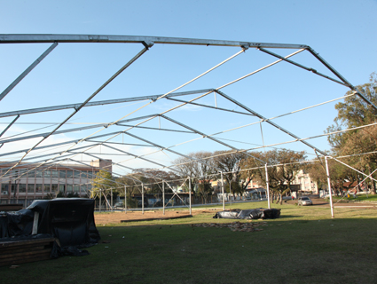 Estrutura dos lonões da Festa da Alegria já começa a ser erguida no Parque da Oktoberfest